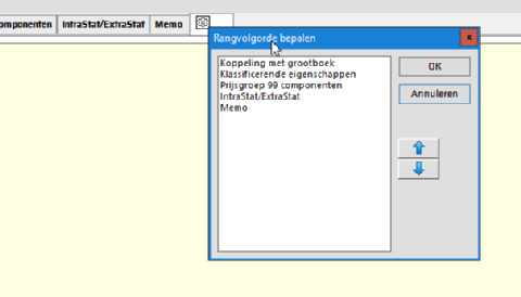 Klik op het tabblad met het tandwiel-icoon om het dialoogvenster "Rangvolgorde bepalen" te openen. In dit venster zie je een lijst met alle tabbladen van de huidige applicatie.
